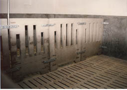 S hrazením i rošty jsem velmi spokojen. Z počátku jsem měl sice obavy z životnosti hlavně podlahových roštů, ale jak sami vidíte i po čtyřletém provozu jsou v naprosto bezvadném stavu. Perfektní je i jejich čistící schopnost díky velkému úhlu otevření štěrbin směrem dolů. Rošty se tak nezanášejí a všechny výkaly bez problémů propadávají do jímky. Odpadá tak jakákoliv starost s čištěním podlah během výkrmu.