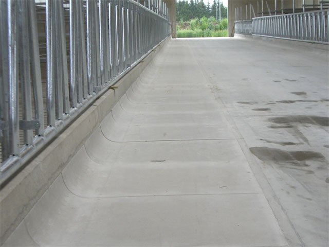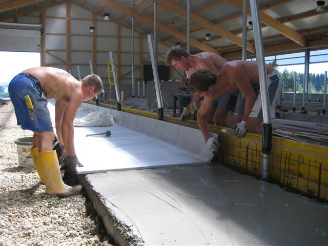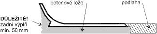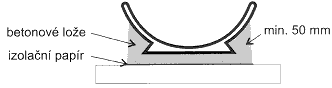 Žlab se pokládá na lože z kvalitního betonu, do cementové mazaniny a upraví se do požadované polohy. Mezi jedlotlivými kusy se ponechá spára ca 2 mm, po zashnutí betonu se vyplní dodávaným pojivem a okamžitě (max. do 15 min) dokonale očistí. Při práci s pojivem se musí dodržovat informace s ním dodané. Patku žlabu obetonujeme.